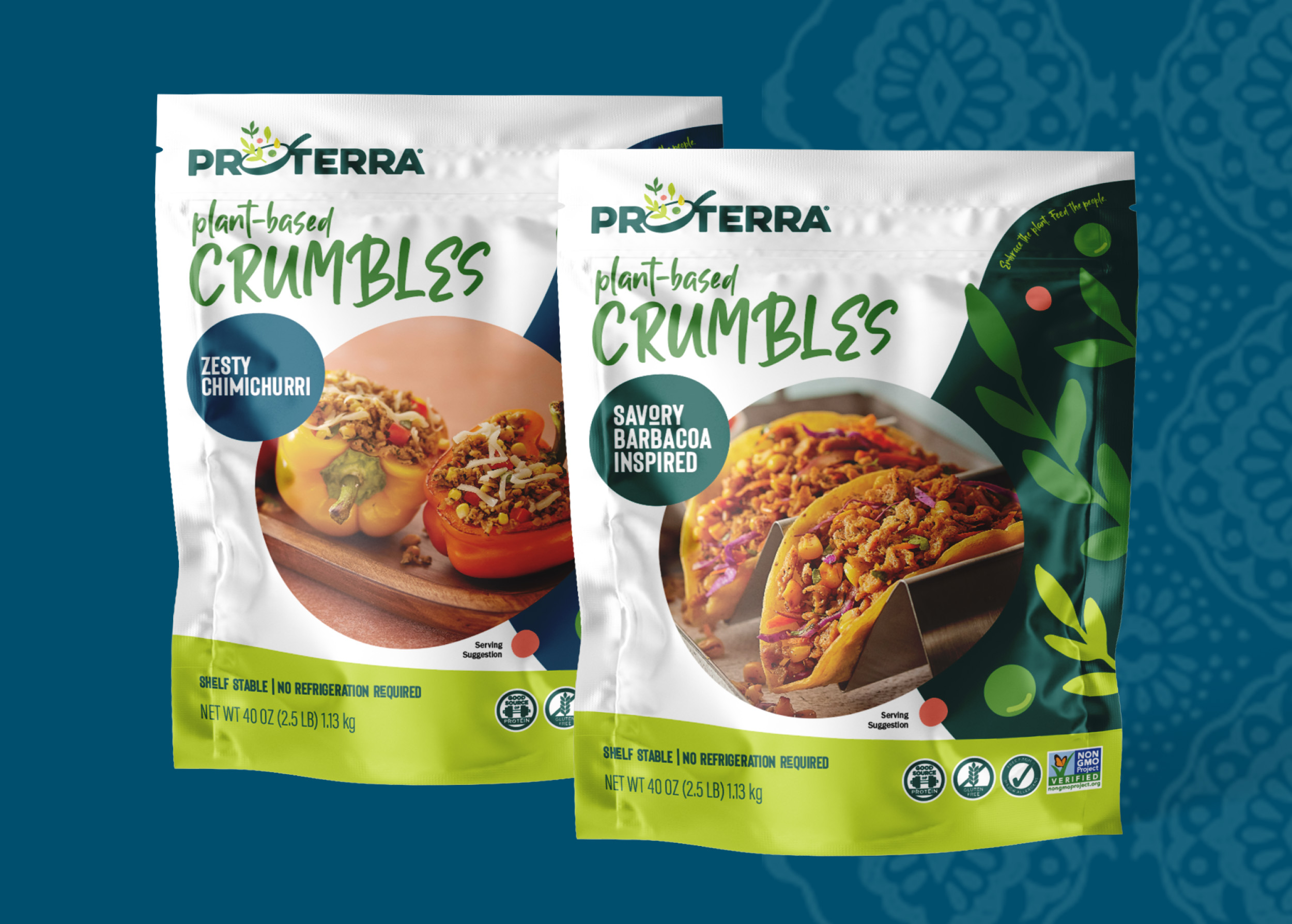 Proterra meets other criteria that matter to consumers, including its simple label (pea protein and seasoning mix), minimum processing and Kosher and Halal certification. Proterra Crumbles are also Non-GMO Project Verified and free from major allergens.